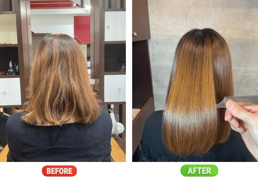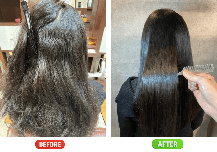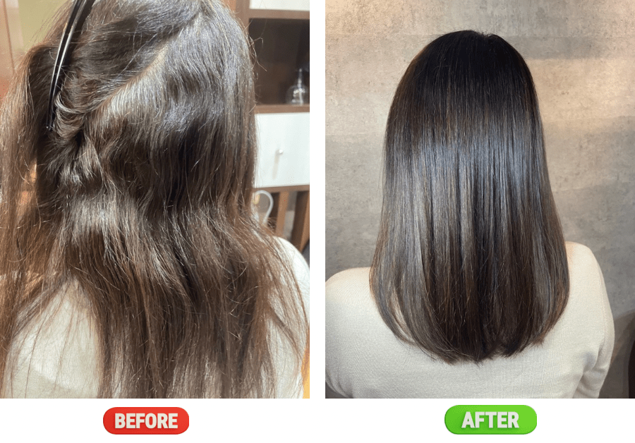 ケアルーガは、髪を「真っ直ぐにする」だけでなく、潤い・艶・柔らかさを同時に叶える縮毛矯正です。その仕上がりは「もっと早くやれば良かった」とお客様から大絶賛。