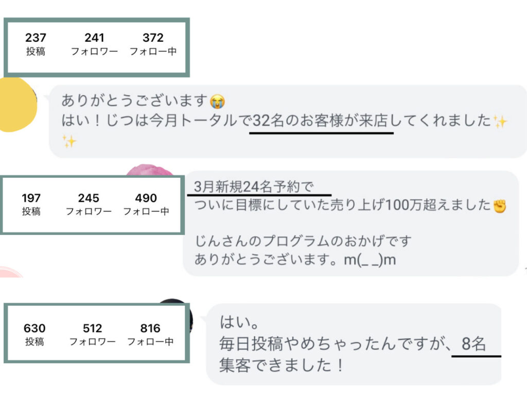 今までインスタ集客0人だった人も同じように集客を叶えています。